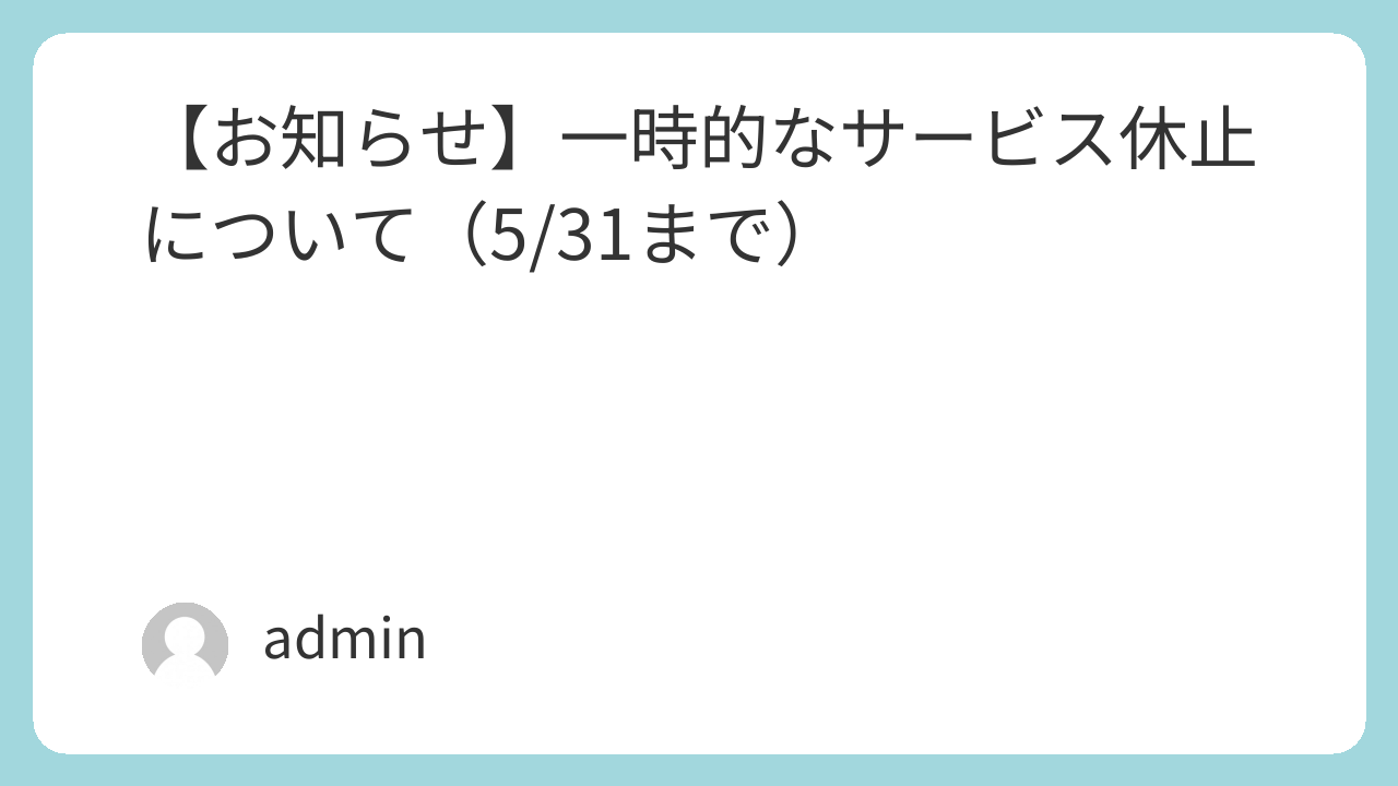 ご不便をおかけしますが、ご理解と応援をいただければ幸いです。サービス再開後も変わらぬご支持をお願い申し上げます。
